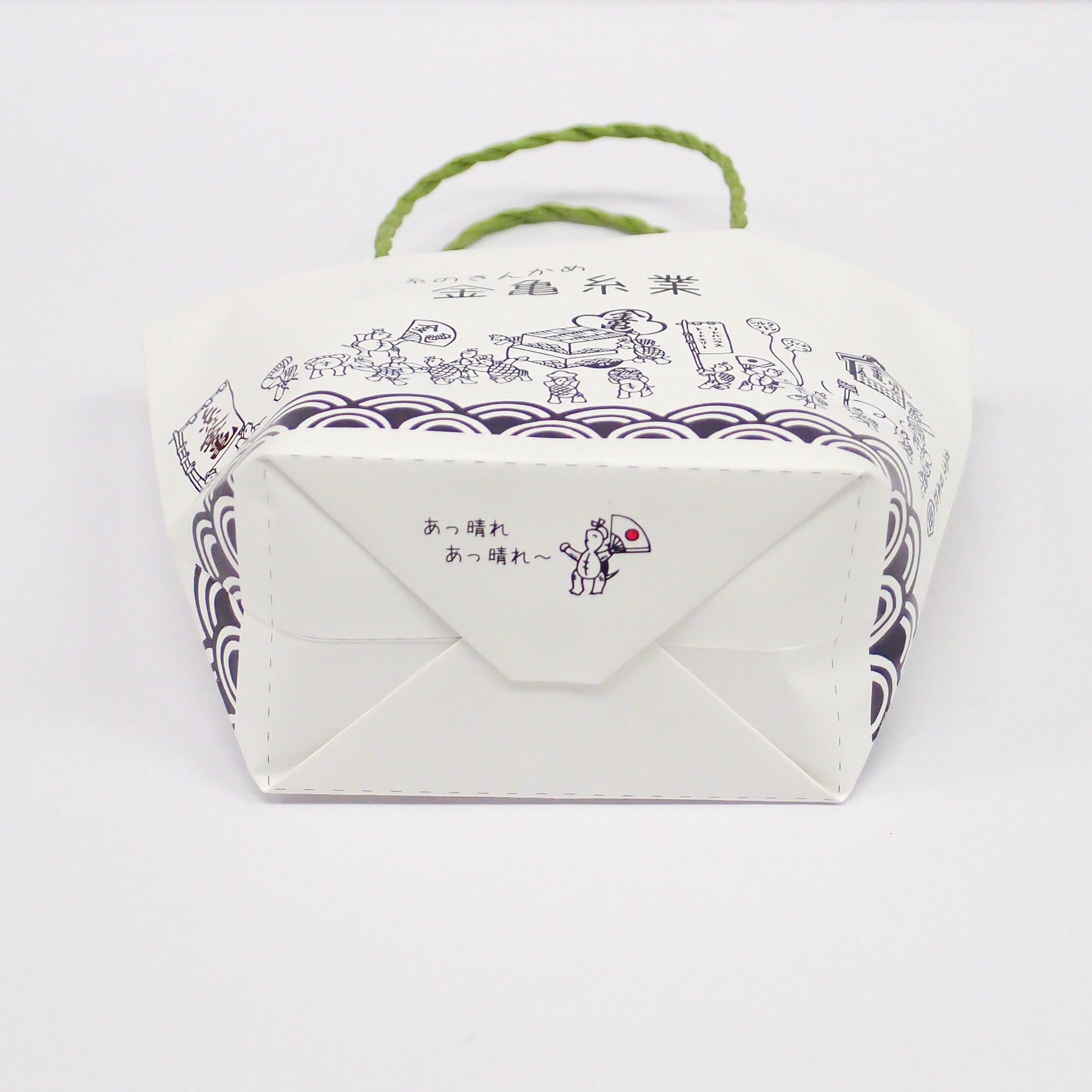 金亀の手拭い柄をデザインした、ミニサイズの可愛らしい手提げ袋を作りました。